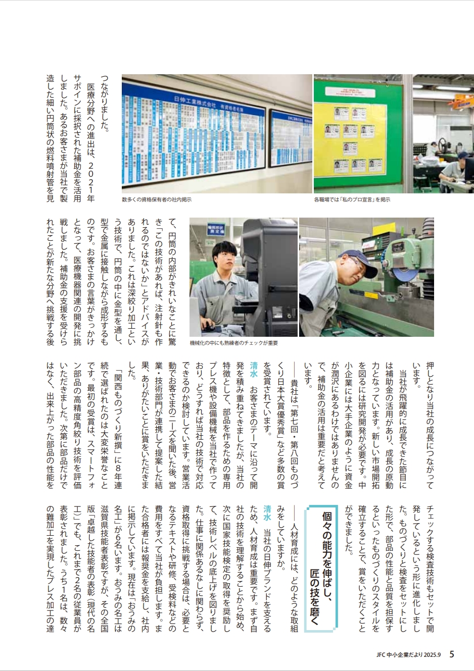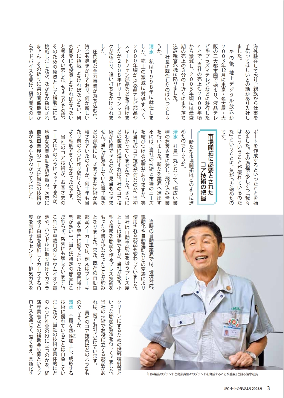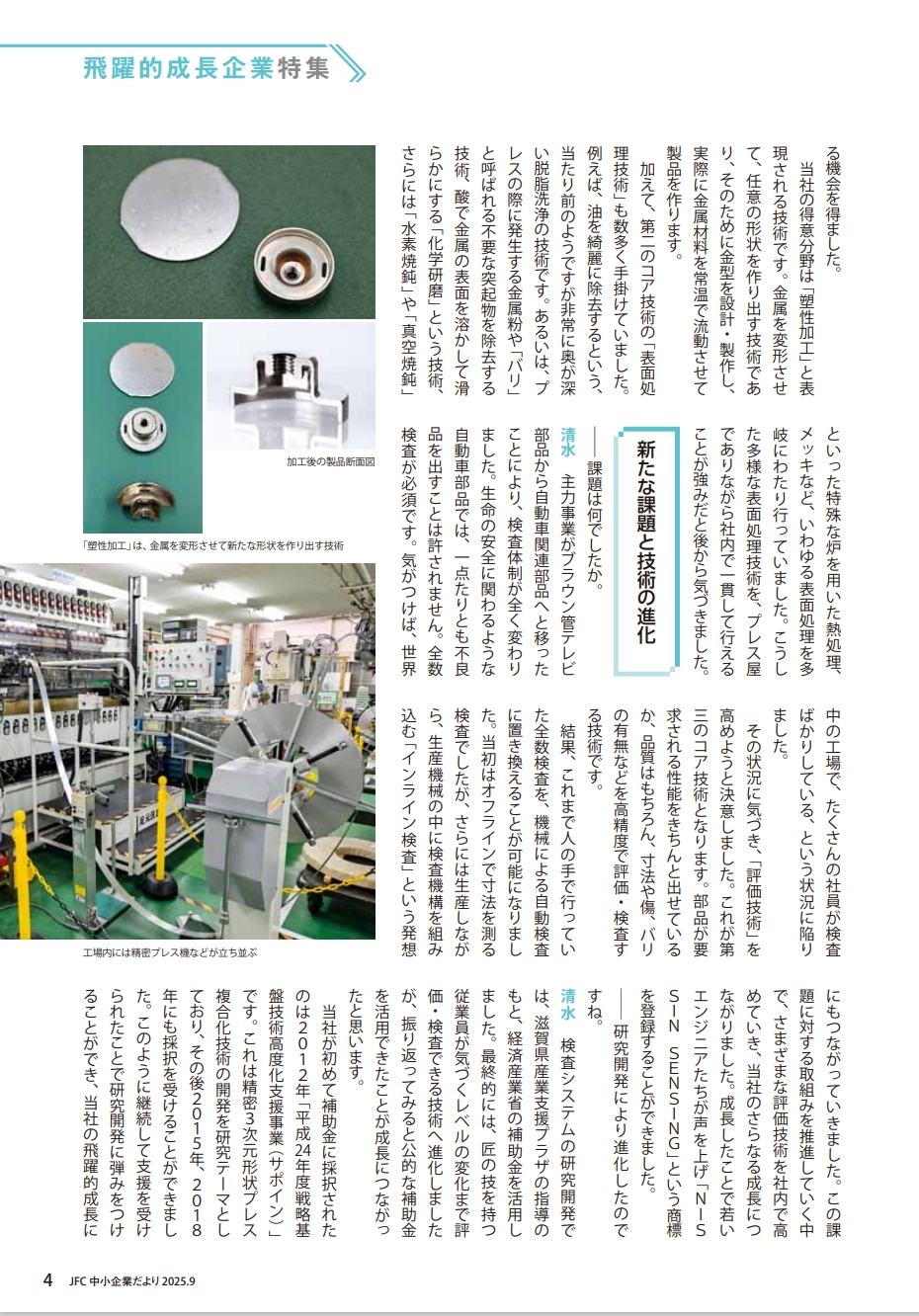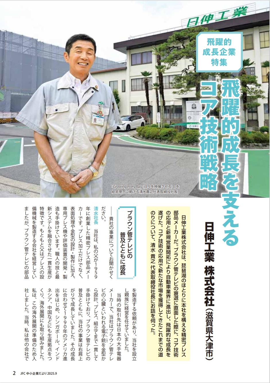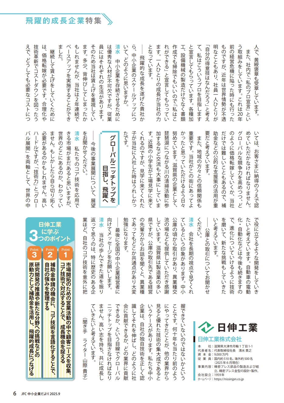 2025年9月発行の日本政策金融公庫「中小企業だより」vol.36において、当社が「飛躍的成長企業特集」に取り上げられました。